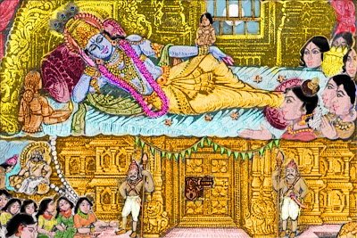 Cowherd colonies in those days may have contained only huts and Nanda's mansion may be a big hut, without a doorkeeper. And all this may be Andal's fertile imagination. But what she is doing is to tell us how one should enter a temple in Archavatara, and worship the Lord. Sri PARASARA BHATTAR in his SRI RANGARAJA STAVA lays down the procedure for temple entry based on this stanza. The door keepers are really our Acharyas. In our daily pooja we open the door of our 'koyil azhwar' (the box where the home idol is kept) by reciting the Acharya Parampara and finally this verse without fail.